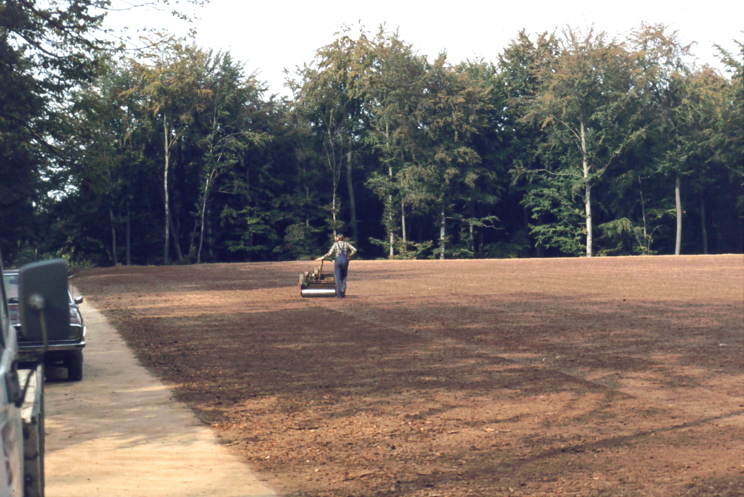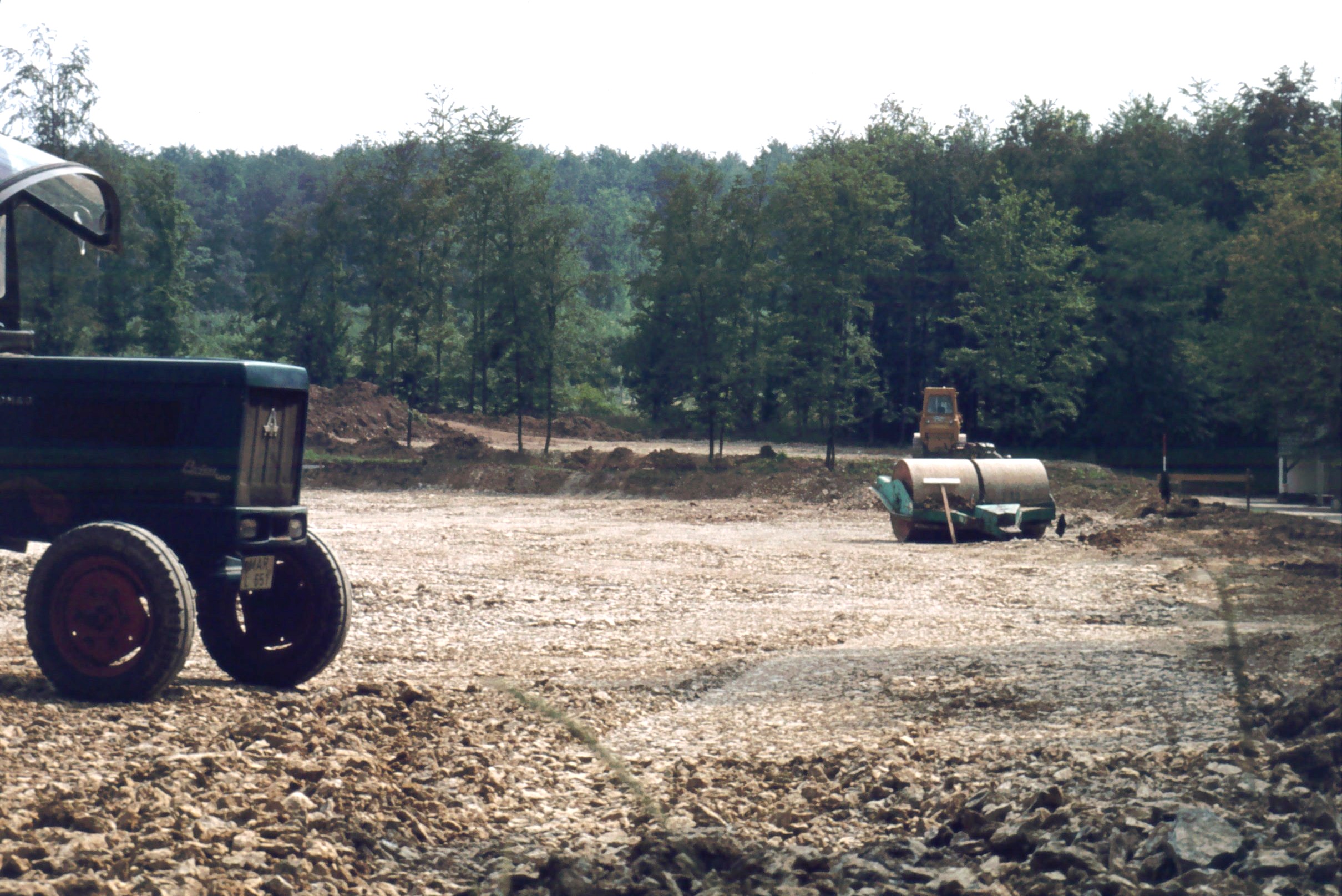 Die Bodenabtrag- und Planierarbeiten wurden an Fremdfirmen vergeben und waren in nicht allzu langer Zeit durchgeführt. Die nun flüchtig und eben hergestellte Fläche wurde mit einer Schicht des bauseitigen Mutterbodens überdeckt, in dem sich jedoch viele Steinchen befanden. So wurden die Mitglieder und vor allem die Jugendlichen und die Kinder gebeten, beim Aufsammeln zu helfen, was die Jugend zu dieser Zeit auch bereitwillig tat. Am Ende deckte die Firma Fleischhacker noch eine Schicht Mutterboden an, die eingesät, über ein Jahr Zeit hatte zu wachsen und sich zu schließen.