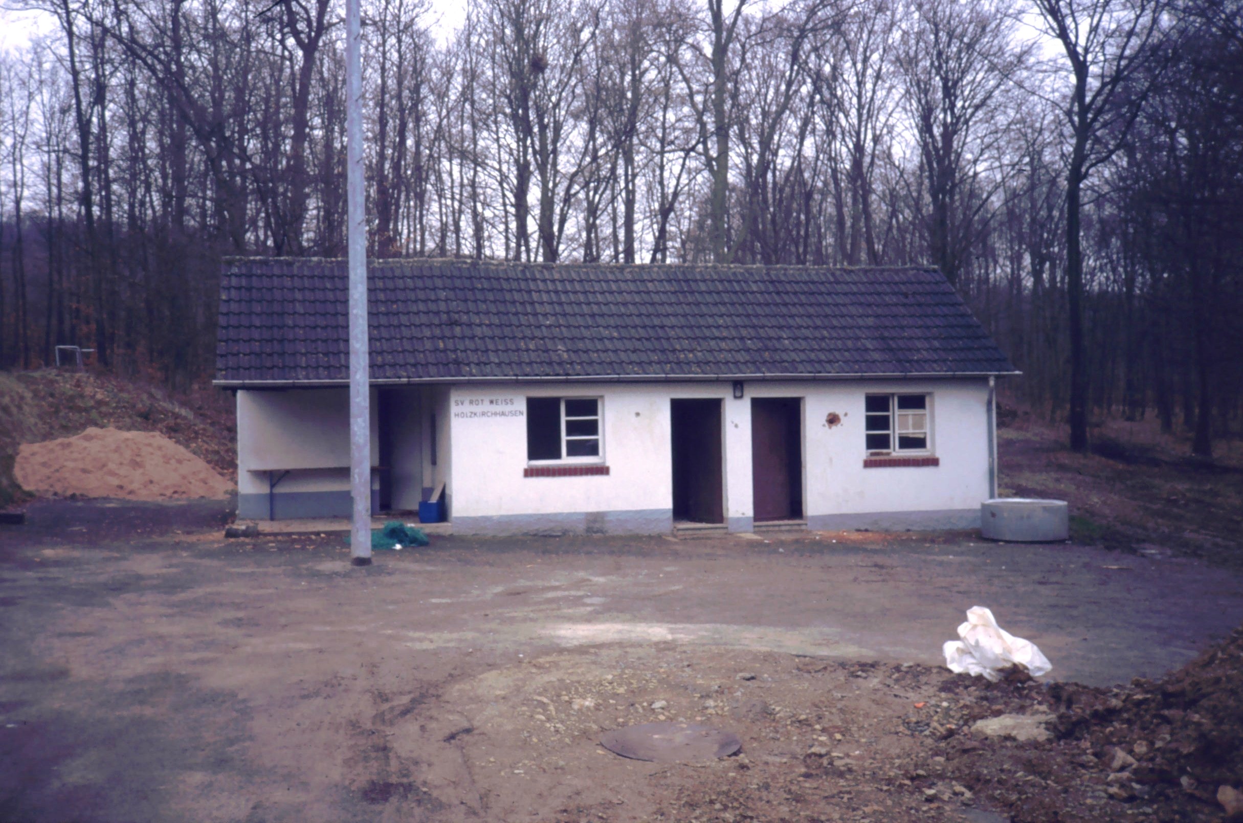Nach einigen Jahren des "süßen Nichtstuns", was Langeweile jedoch ausschloss, wurden Anfang 1987 Stimmen laut, die zu der neuen Sportanlage ein entsprechendes Gebäude sehen mochten. Sicher kein unberechtigter Wunsch, denn keine Waschgelegenheit zu haben war die eine Seite, der Weg zur Toilette, besonders für Damen, die andere. Das im Jahre anno 1987, als beinahe jeder Farb-TV schaute, war nicht mehr akzeptabel. Immer die Zukunft im Hinterkopf, wie und ob es in einem so kleinen Verein weitergehen kann, ob sich solche finanziellen Risiken lohnen? Man rang sich durch und entschied sich für den Bau eines neuen, angemessenen Vereinsheims, was im Klartext bedeutete: zwei Mannschaftsduschen mit Umkleideräumen, eine Schiedsrichterdusche, Herren und Damen-WC, diverser Abstellräumen und ein Heizraum im Untergeschoss. Im Erdgeschoss einen großen Raum, der den Gymnastik- und Turngruppen während der Woche und bei Heimspielen als Gastraum genutzt werden sollte. Dazu eine kleine Küche zur Bewirtung der Gäste. Das waren letztendlich die Vorgaben, die Architekt Willi Müller in seinen Plan einfließen ließ und was die Vereinsführung mit den freiwilligen Helfern tadellos umzusetzen vermochten.
